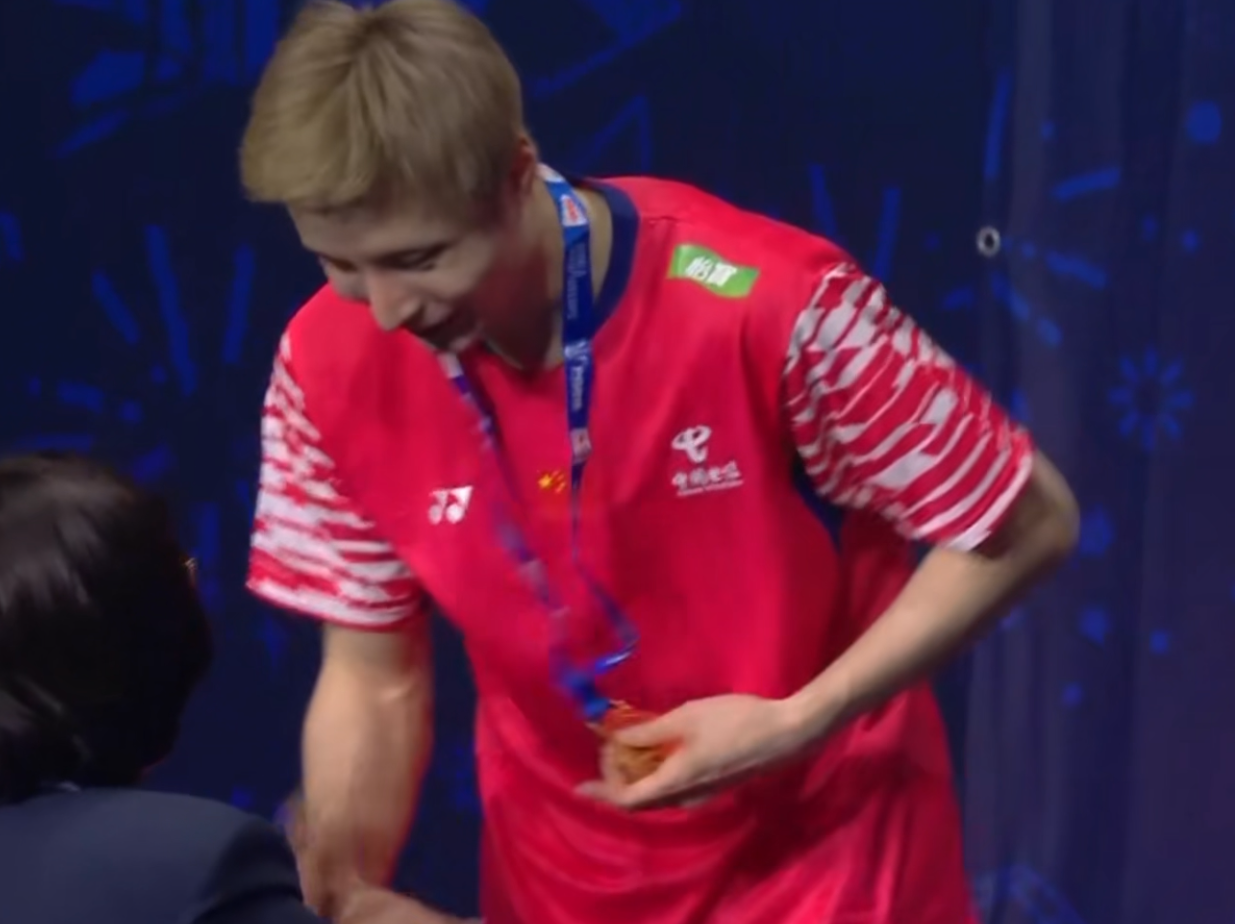 来到颁奖典礼,石宇奇就非常开心了。在等待自己站上颁奖台的时候,他不断摇晃,迫不及待自己站上去。